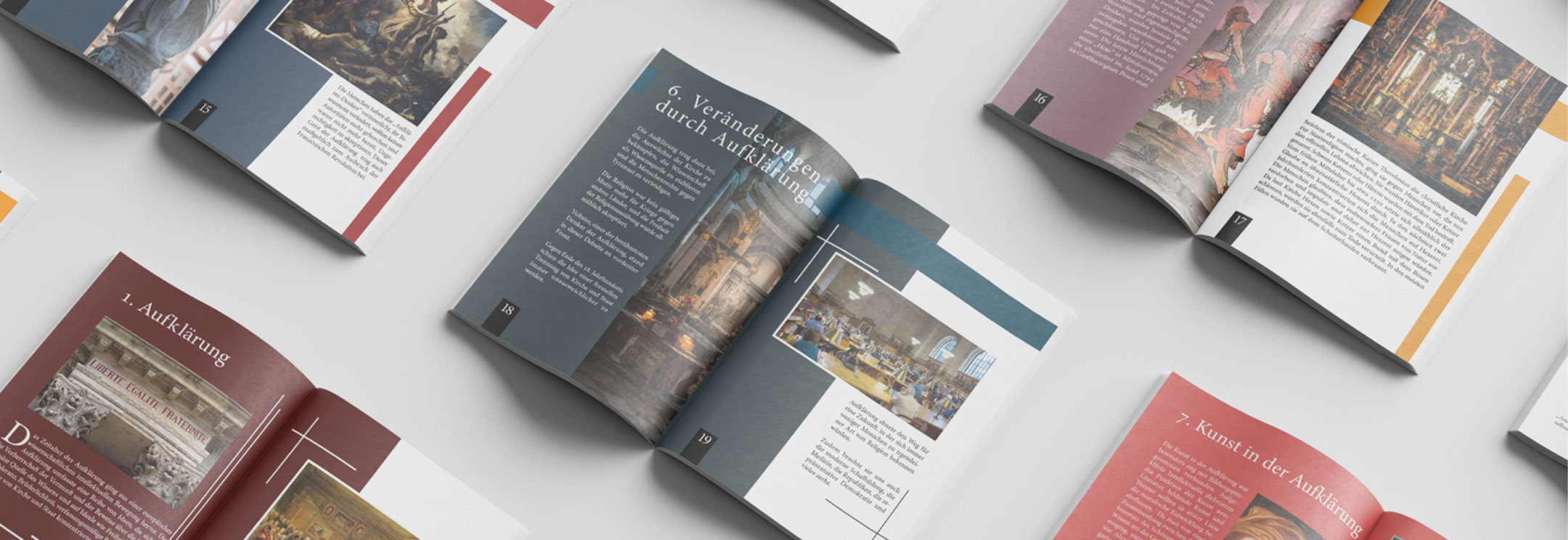 Mockup showing multiple spreads from the final brochure
